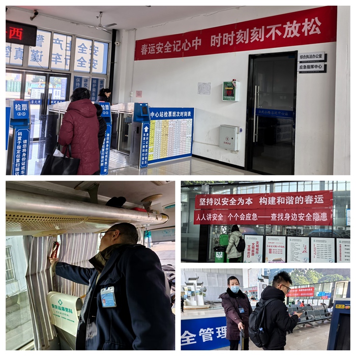 工作人員忙碌地懸掛起鮮艷的春運主題橫幅,“春運安全記心中,時時刻刻不放松”“堅持安全為本,構建和諧春運”等標語在候車大廳內格外醒目,迅速營造出濃厚的春運氛圍。